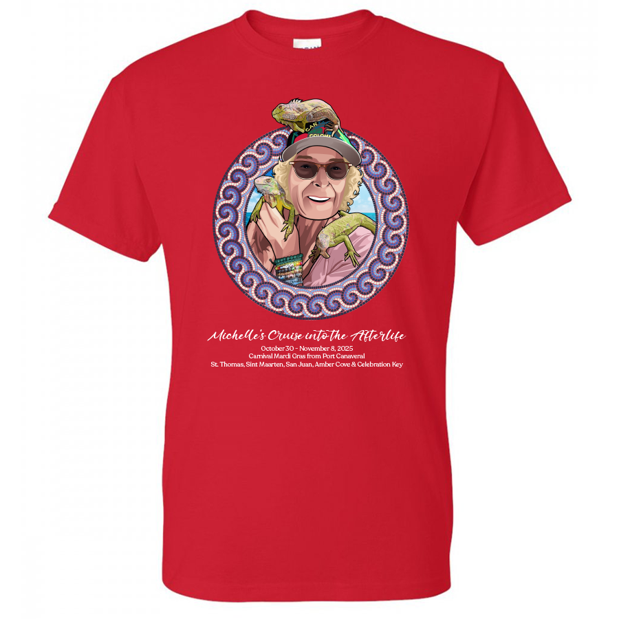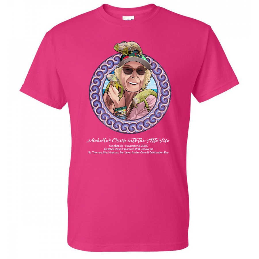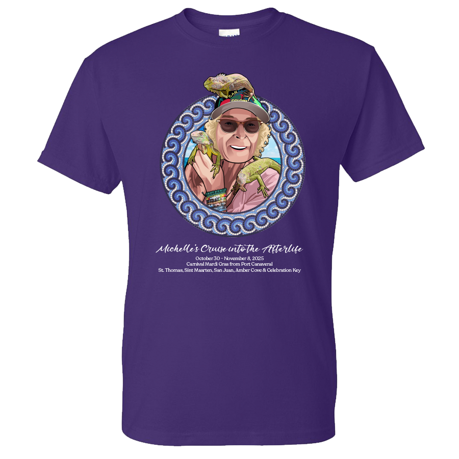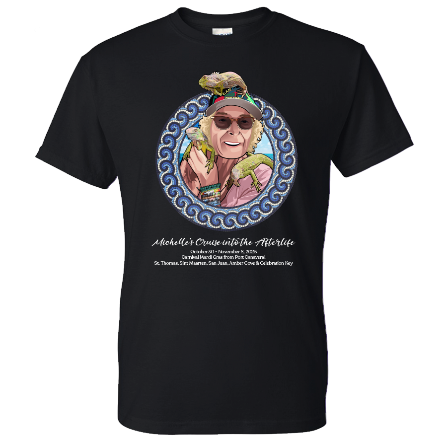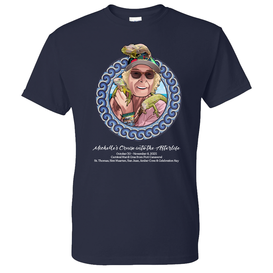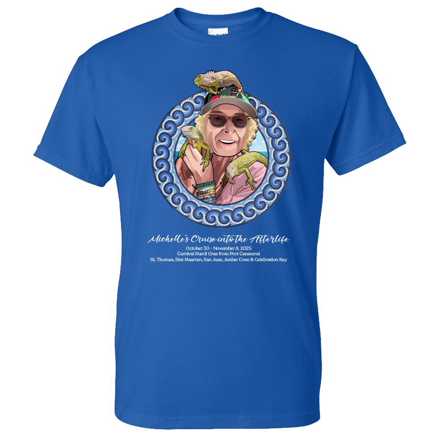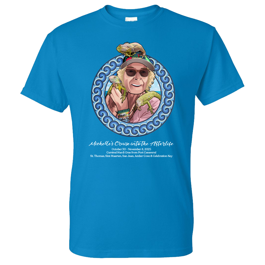 Set sail in loving memory of Michelle Altman with this special shirt, created to honor a dear friend who truly loved life at sea. Michelle was an avid cruiser, a bright spirit, and one of ShipTees’ biggest supporters. This commemorative design celebrates her passion for cruising and the joy she brought to everyone around her. Worn aboard the Mardi Gras this October, it’s more than a shirt—it’s a tribute to friendship, adventure, and a life well-lived. Let’s celebrate Michelle together, just the way she would have wanted—laughing, cruising, and surrounded by friends.