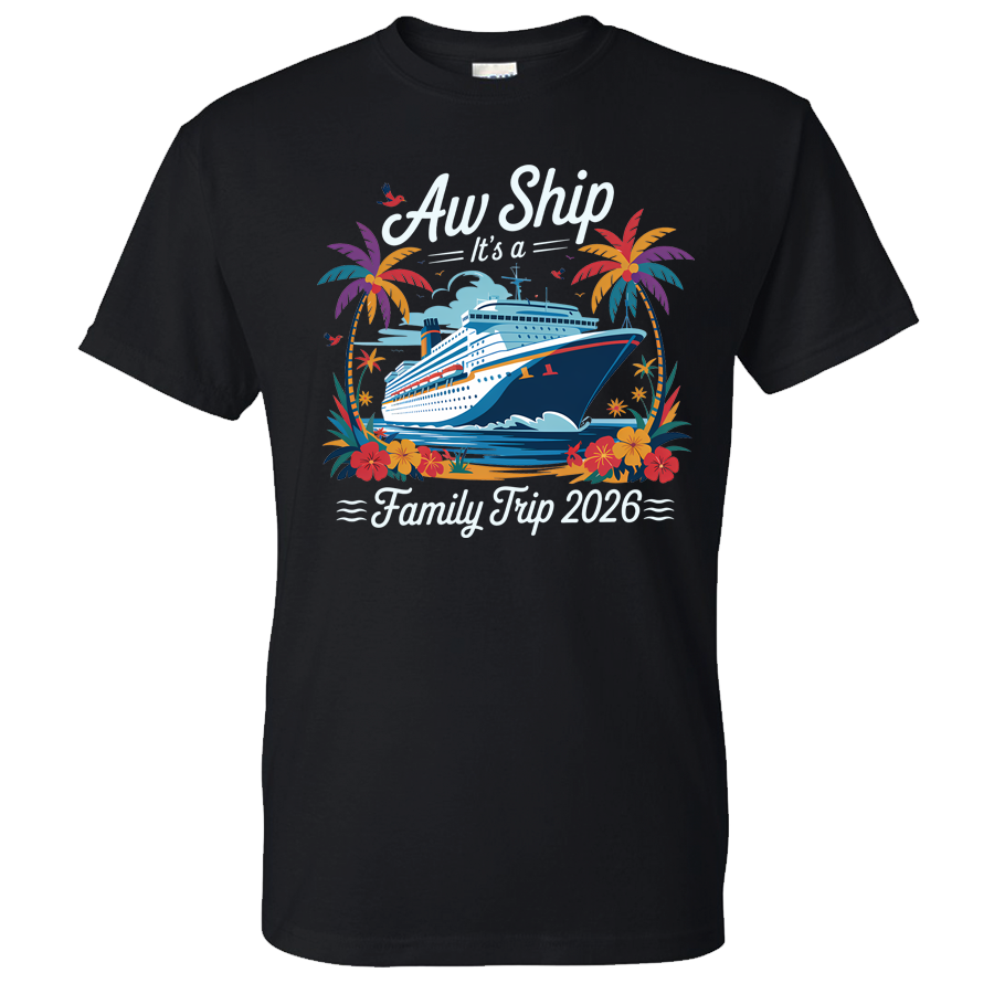 Celebrate your family vacation at sea with the Awe Ship It’s a Family Trip Cruise Shirt! Perfect for group photos, sea days, and making memories together, this shirt brings fun and personality to your cruise wardrobe. Comfortable, vibrant, and designed with cruisers in mind, it’s a keepsake your whole family can enjoy.